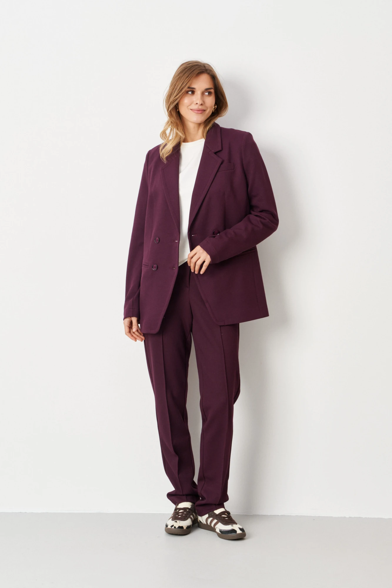 Этот бордовый жакет станет универсальным дополнением вашего гардероба, сочетающим в себе комфорт, стиль и практичность.