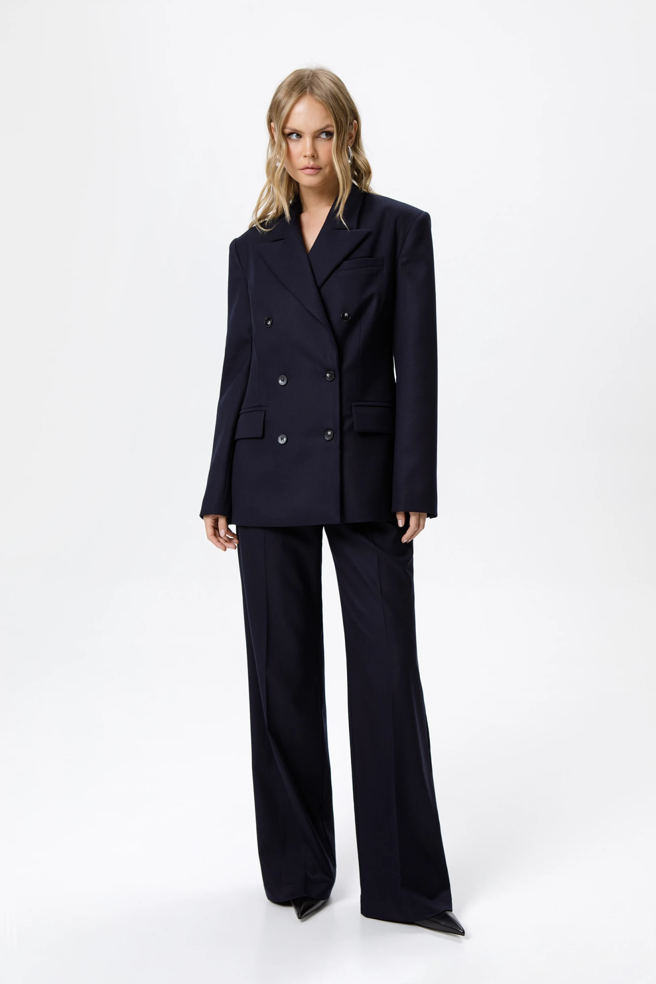 Детали: жакет свободного покроя и полуприлегающего силуэта, двубортная застежка на петли и пуговицы, отрезные бочки, пиджачный воротник, функциональные карманы, жакет на подкладке.