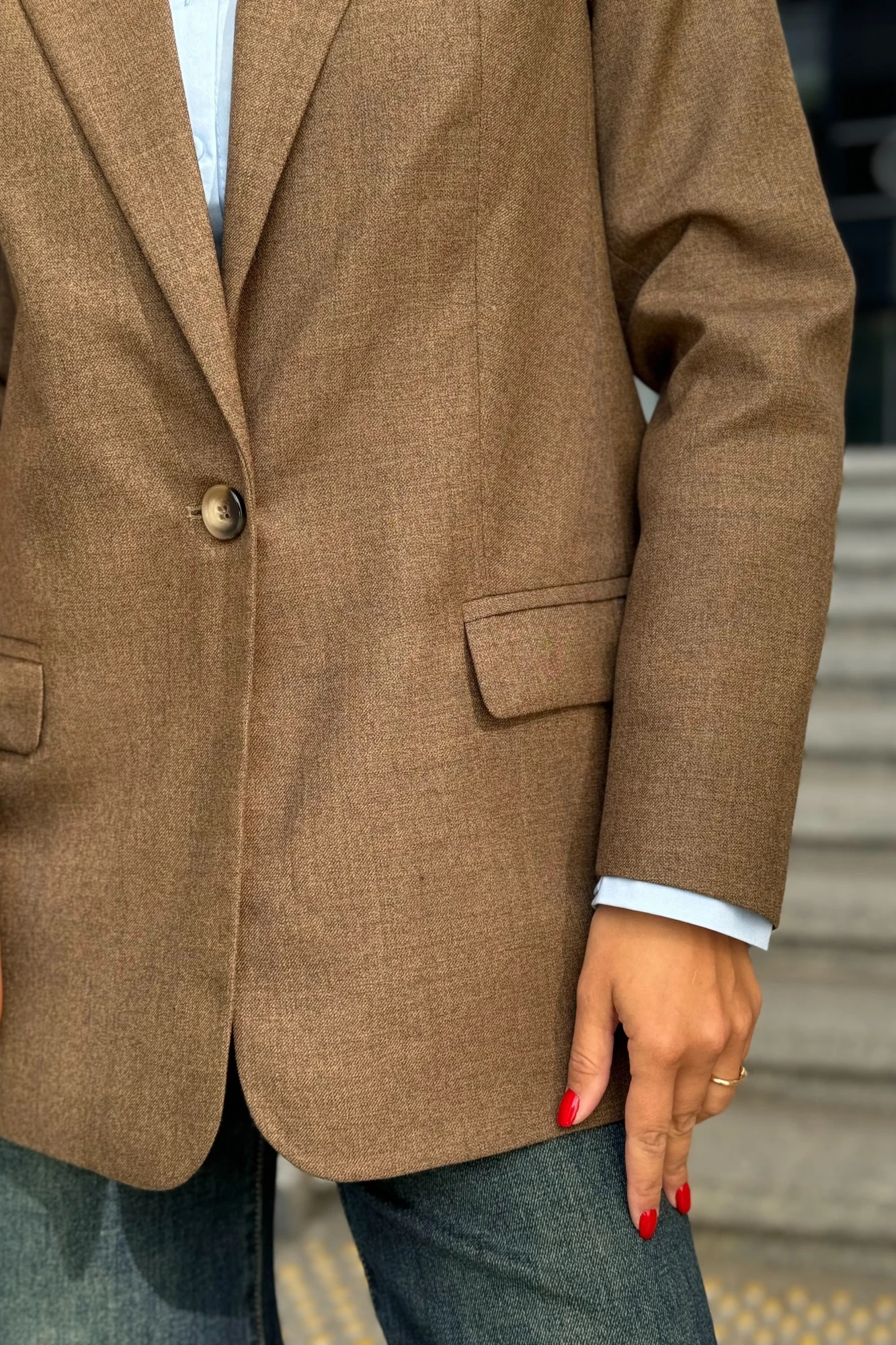 Рукав втачной, двухшовный, длинный, в области локтя по локтевому шву с декоративной накладной деталью в виде "заплатки", выполненной из однотонной замши. Локтевой шов по низу оформлен отлетной шлицей с 4-мя петлями и 4-мя пуговицами.