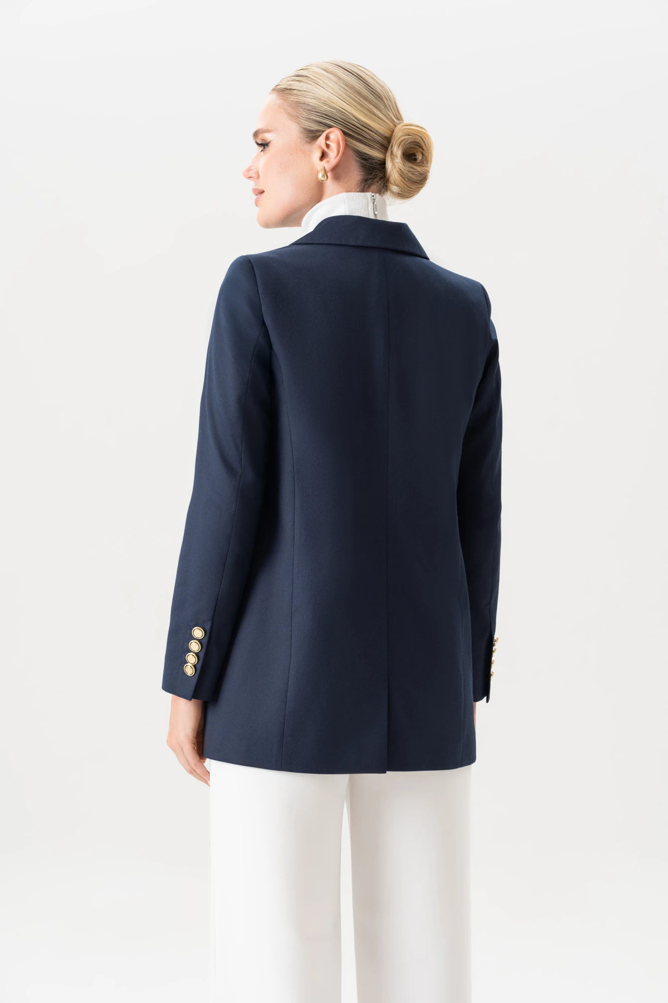 Длина жакета по среднему шву спинки – 75,5см (±2,0 см), Ширина на уровне глубины проймы – 58,0 см (±1,0 см), Ширина на уровне линии талии – 58,0см (±1,0 см), Ширина на уровне линии бедер – 61,0 см (±1,0 см), Ширина на уровне линии низа – 65,0см (±1,0 см). Длина рукава – 61,0 см (±1,0 см), Ширина рукава вверху – 20,5 см (±1,0 см), Ширина рукава внизу - 13,5 см (±0,5 см), Длина плеча – 12,2 см (±0,5 см).