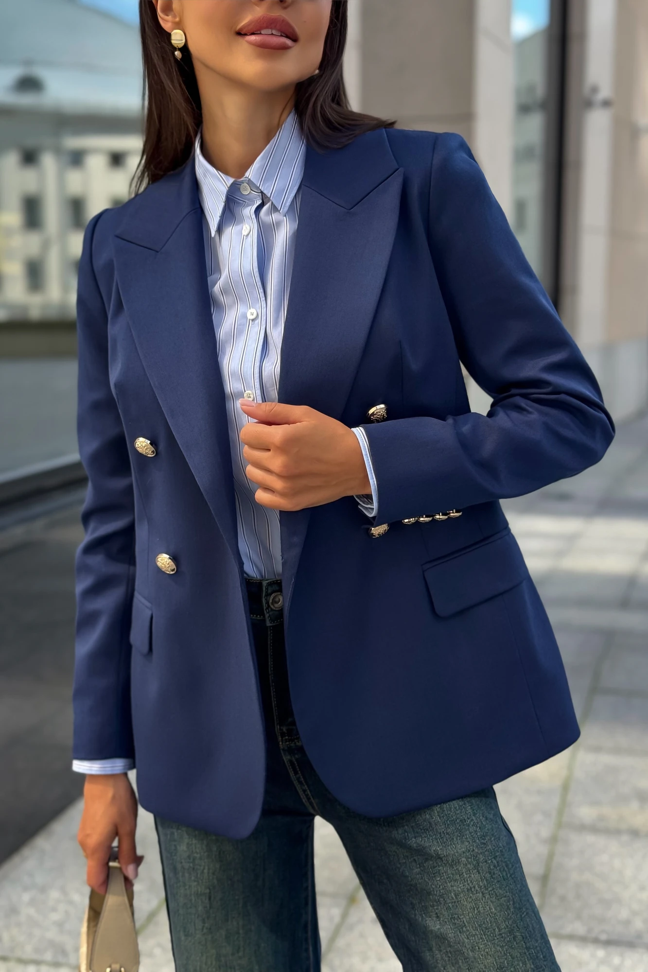 Жакет с плечевыми накладками.